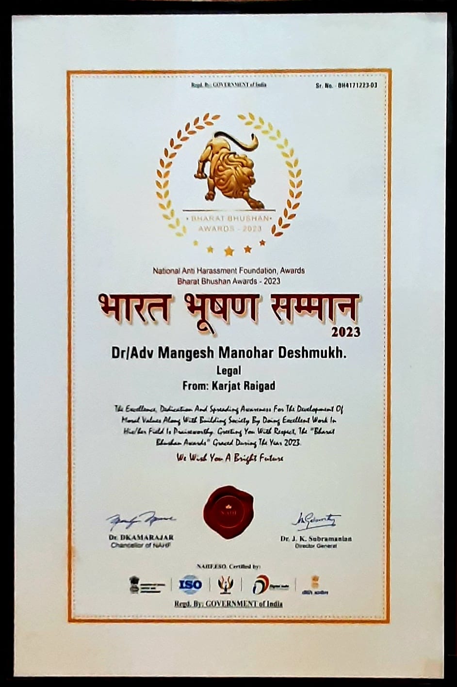 It is said that “Law and justice are the pillars of a society’s integrity, ensuring fair- ness and righteousness prevail in every interaction and decision.” One such per- sonality that upholds this belief is Mr. Mangesh Manohar Deshmukh.